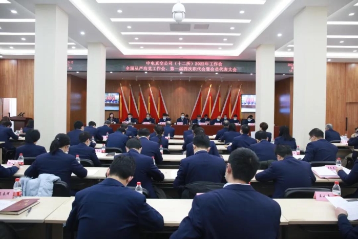 2月15日,中电真空(12所)召开2022年工作会、全面从严治党工作会、第一届四次职工代表大会暨会员代表大会。公司领导班子、中层以上领导干部、相关部门负责人以及部分干部职工代表参加会议。