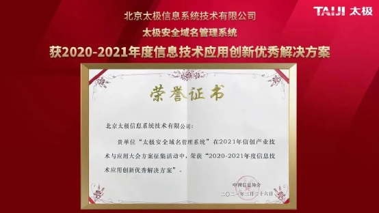 “太极安全域名管理系统”曾荣获2020—2021年度信息技术应用创新优秀解决方案