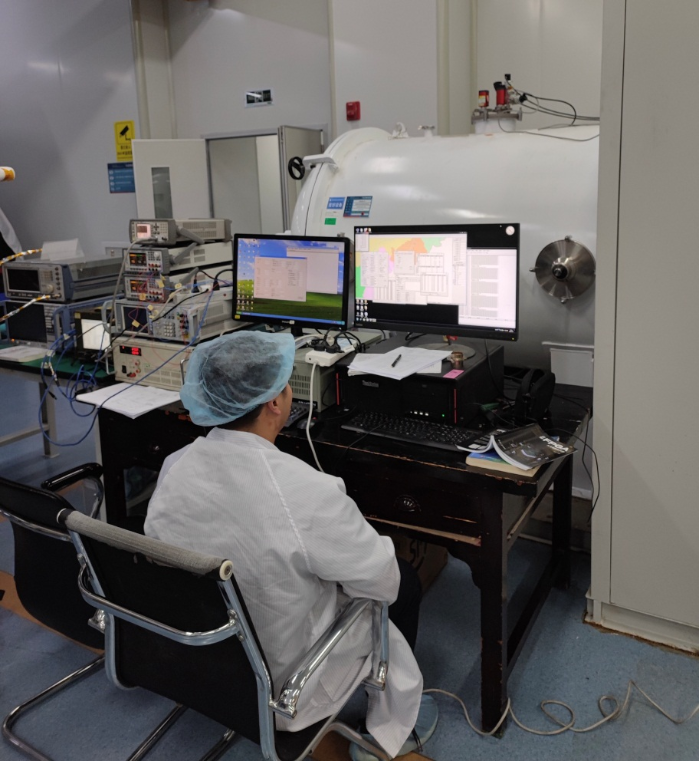 7月17日凌晨三点,西光厂内一片寂静,路灯似乎也热到发着微弱的光,偶尔听得到一声两声狗的吠叫。此时,热真空实验室依然灯火通明,伴随着机器声轰鸣作响,王珏和姚佳豪喝完第二杯咖啡,“掰开”上下眼皮,继续守在设备前,紧紧盯着设备的功能和性能指标。“指标完全符合要求”!最后一个循环结束,王珏激动地说道。他和姚佳豪通宵达旦地开展大量试验验证, 经过4个白天和黑夜,最终顺利完成了某项目热真空试验。