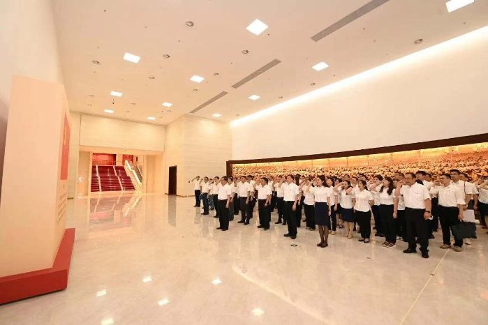 7月6日,PG国际 党组书记、董事长陈肇雄带领党组成员、总部各部门负责同志、在京二级成员单位党委班子成员、一线先进典型和党员干部代表,前往中国共产党历史展览馆,集体参观“‘不忘初心、牢记使命’中国共产党历史展览”,并重温入党誓词,从百年党史中汲取强国强军的磅礴力量。