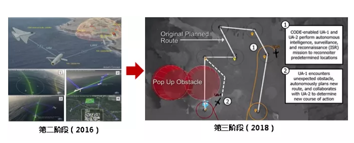 第三阶段从2018年1月开始,测试使用6架真实无人机以及模拟飞机的协同能力,实现单人指挥无人机小组完成复杂任务。
