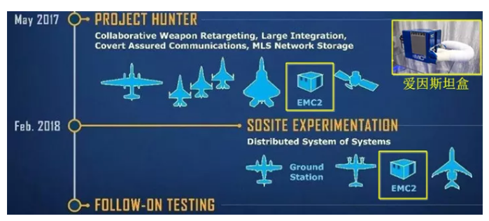 在SoSITE项目的最新试验中,使用了臭鼬工厂开发的复杂组织体开放式系统架构(E-OSA)任务计算机版本2(EMC2),即所谓的“爱因斯坦盒”,如图7所示。洛克希德·马丁公司开发的E-OSA兼容了美空军OMS标准。“爱因斯坦盒”可为系统之间的通信提供了安全保护功能,在将相关能力部署到操作系统之前,“爱因斯坦盒”能够确保快速而安全的实验。“爱因斯坦盒”不仅是一个通信网关,它可被比作一部智能手机,能够运行很多不同的应用程序,具备实现动态任务规划、ISR以及电子战的能力。